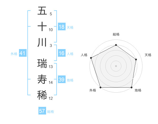 五十川 瑞寿稀さんを姓名の画数から五運を鑑定
