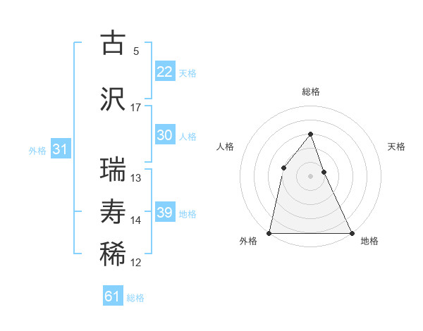 古沢 瑞寿稀さんを姓名の画数から五運を鑑定