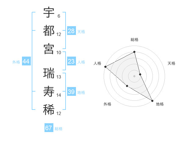 宇都宮 瑞寿稀さんの総格は67画の4点