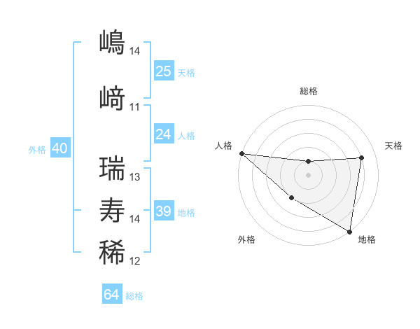 嶋﨑 瑞寿稀さんの天格は25画の4点!