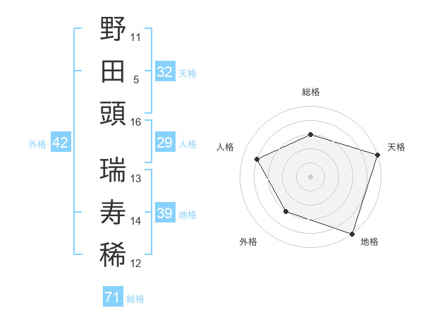 野田頭 瑞寿稀さんの総格は71画の3点!