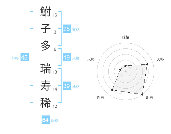 鮒子多 瑞寿稀さんの地格は39画の5点!