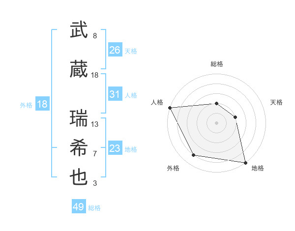 武蔵 瑞希也さんを姓名の画数から五運を鑑定