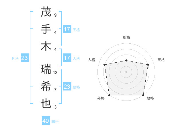 茂手木 瑞希也さんを姓名の画数から五運を鑑定