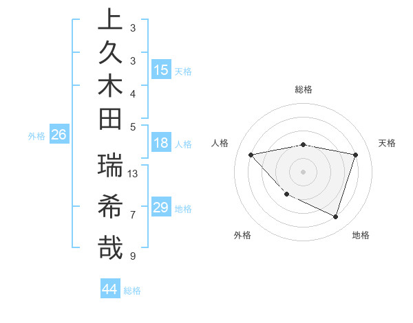 上久木田 瑞希哉さんの天格は15画の4点!