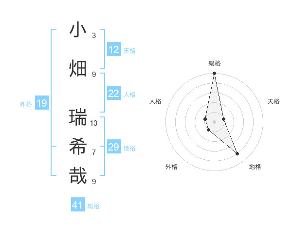 小畑 瑞希哉さんの天格は12画の1点!