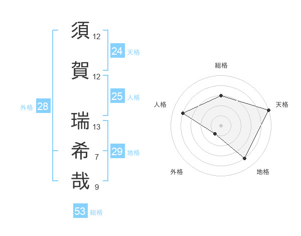 須賀 瑞希哉さんを姓名の画数から五運を鑑定