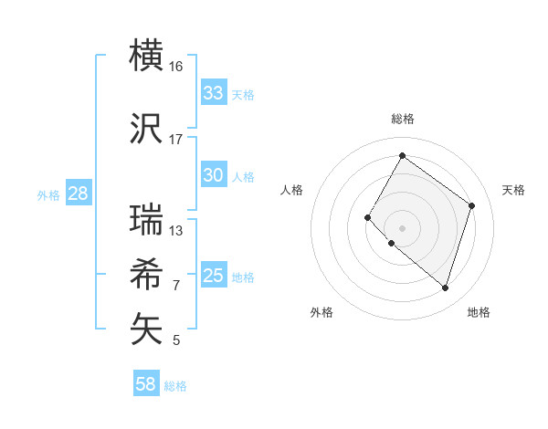 横沢 瑞希矢さんを姓名の画数から五運を鑑定