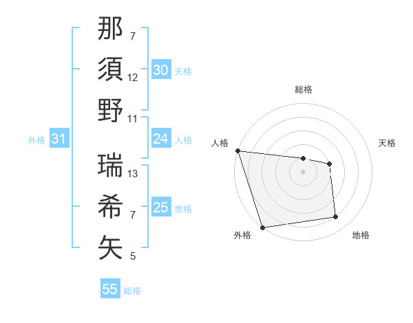 那須野 瑞希矢さんを姓名の画数から五運を鑑定