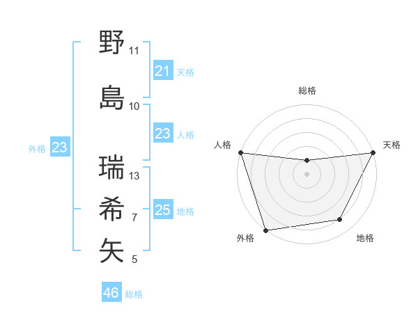 野島 瑞希矢さんを姓名の画数から五運を鑑定