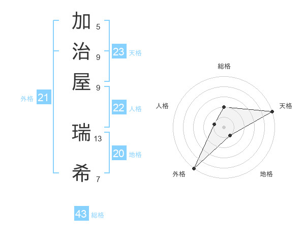 加治屋 瑞希さんの天格は23画の5点