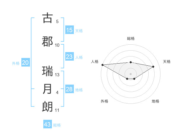 古郡 瑞月朗さんを姓名の画数から五運を鑑定