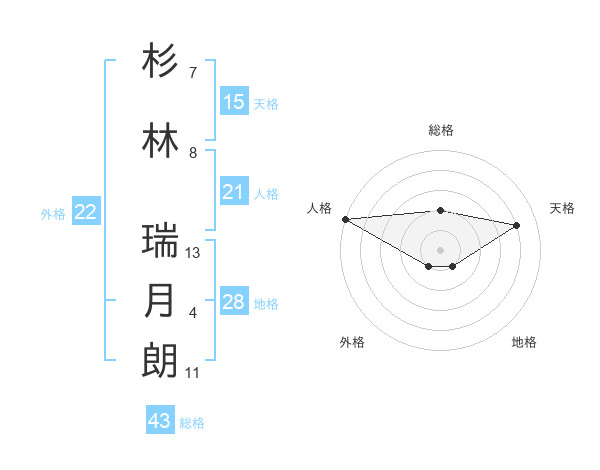 杉林 瑞月朗さんを姓名の画数から五運を鑑定