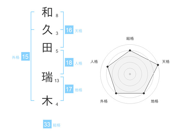 和久田 瑞木さんを姓名の画数から五運を鑑定