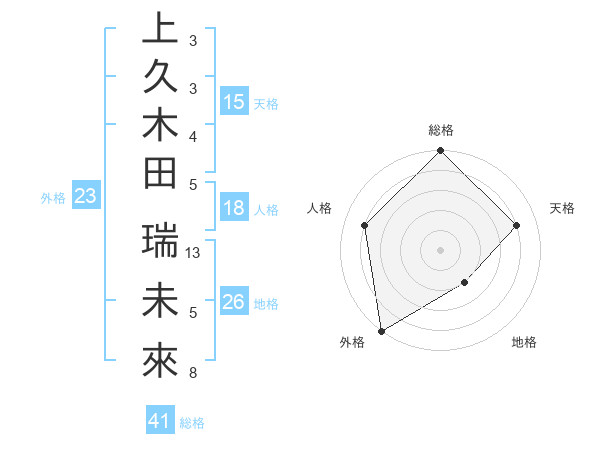 上久木田 瑞未來さんを姓名の画数から五運を鑑定