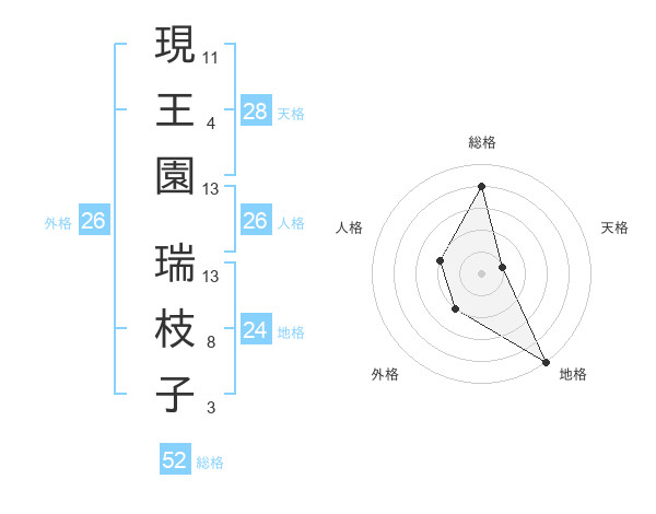 現王園 瑞枝子さんの総格は52画の4点!