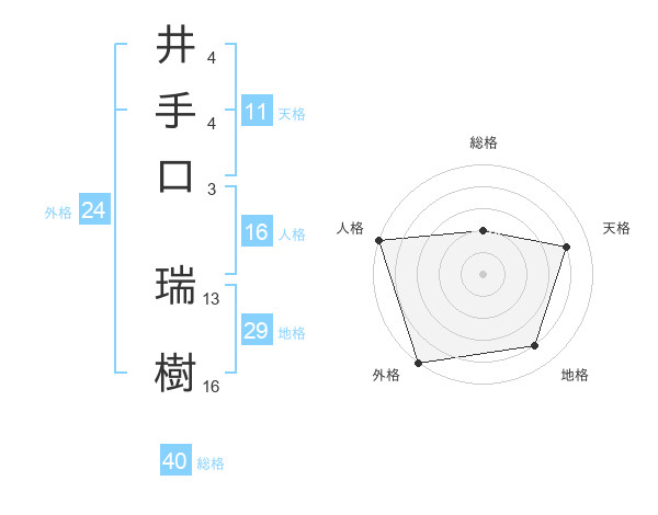 井手口 瑞樹さんの天格は11画の4点!