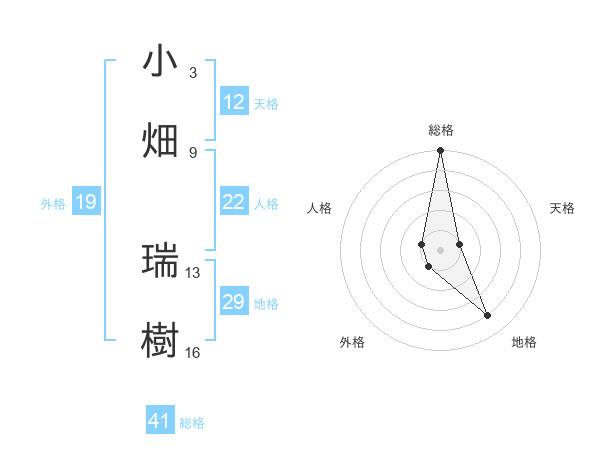 小畑 瑞樹さんを姓名の画数から五運を鑑定