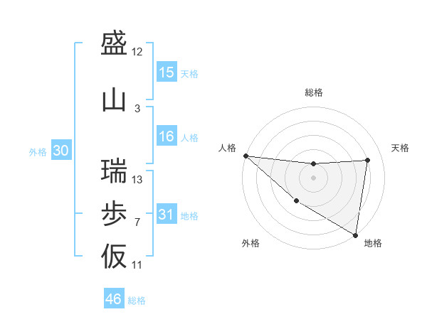 盛山 瑞歩仮さんを姓名の画数から五運を鑑定