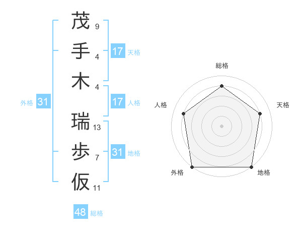 茂手木 瑞歩仮さんの地格は31画の5点!