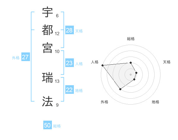 宇都宮 瑞法さんを姓名の画数から五運を鑑定