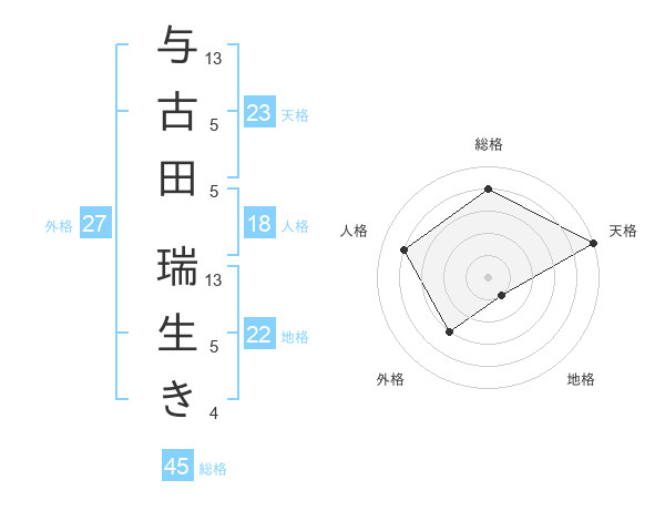 与古田 瑞生きさんを姓名の画数から五運を鑑定