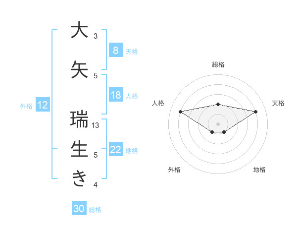 大矢 瑞生きさんを姓名の画数から五運を鑑定