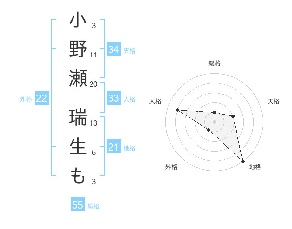 小野瀬 瑞生もさんの総格は55画の1点!