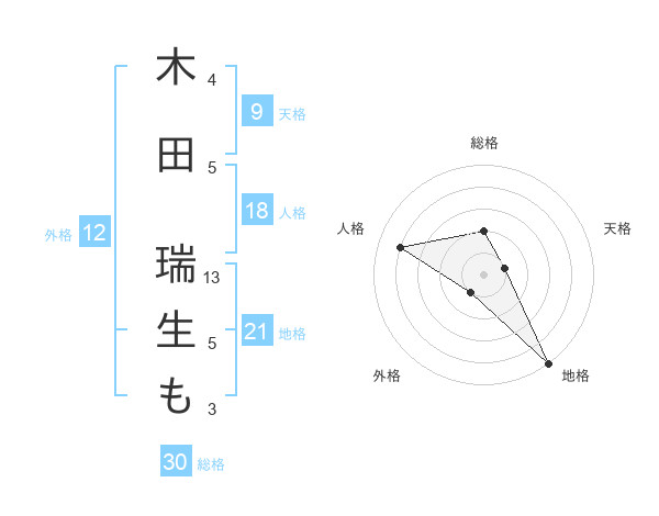 木田 瑞生もさんを姓名の画数から五運を鑑定