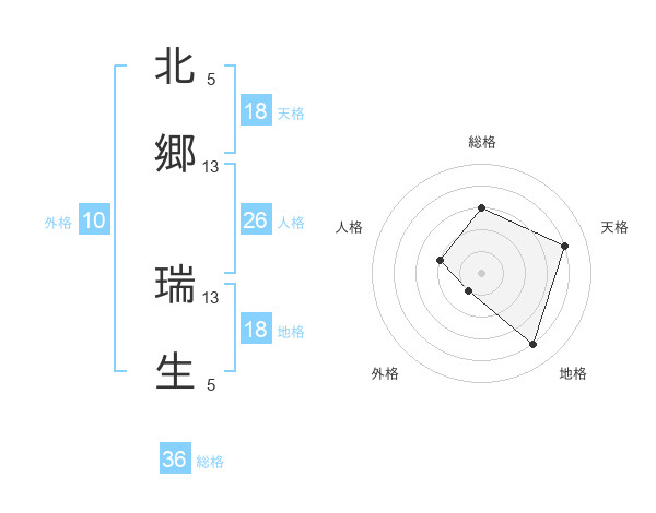 北郷 瑞生さんを姓名の画数から五運を鑑定
