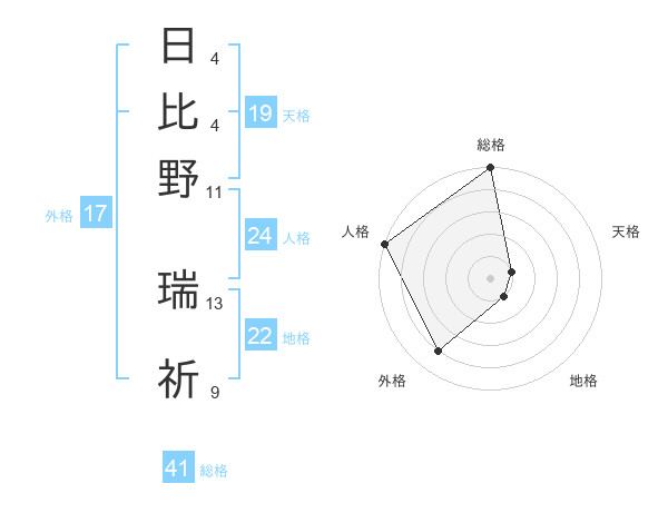 日比野 瑞祈さんを姓名の画数から五運を鑑定
