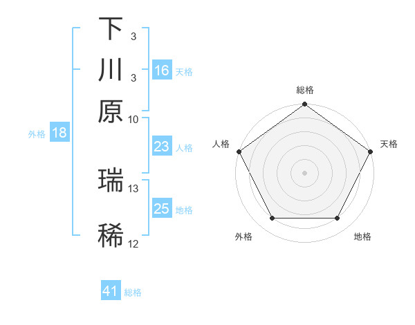 下川原 瑞稀さんの総格は41画の5点!