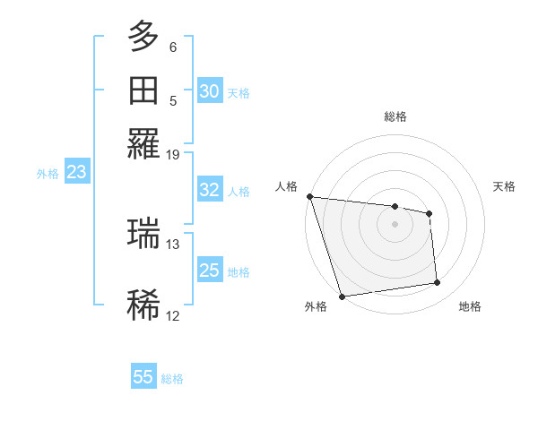 多田羅 瑞稀さんを姓名の画数から五運を鑑定