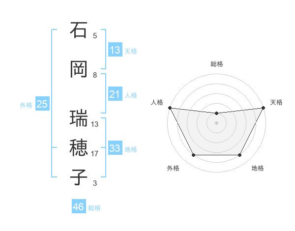 石岡 瑞穂子さんの天格は13画の5点!