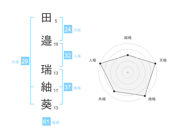 田邉 瑞紬葵さんの総格は61画の3点!