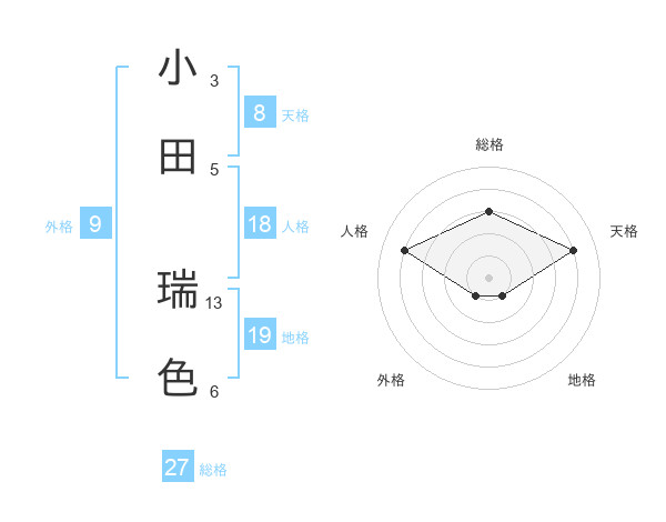 小田 瑞色さんの総格は27画の3点!