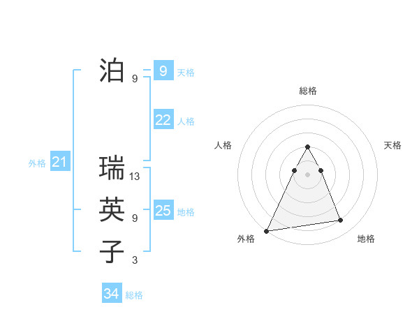 泊 瑞英子さんの外格は21画の5点