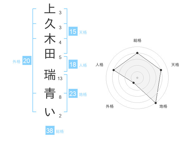 上久木田 瑞青いさんを姓名の画数から五運を鑑定