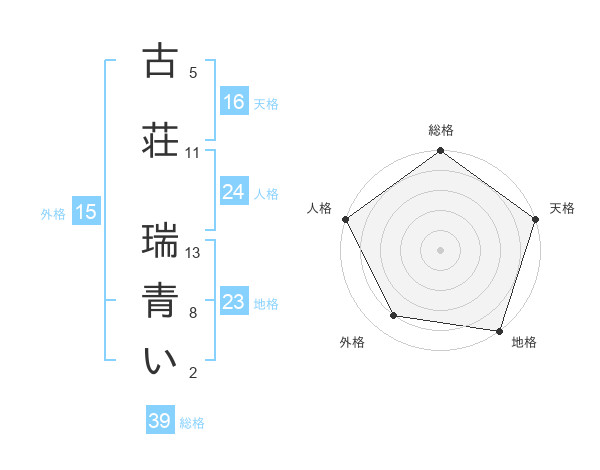 古荘 瑞青いさんを姓名の画数から五運を鑑定