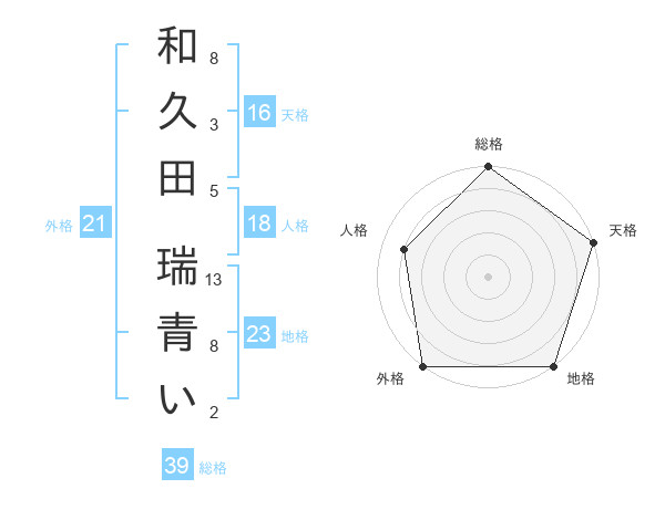 和久田 瑞青いさんを姓名の画数から五運を鑑定