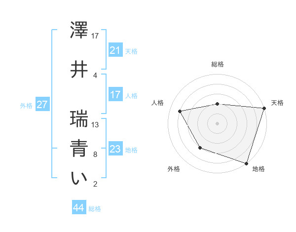 澤井 瑞青いさんの総格は44画の2点