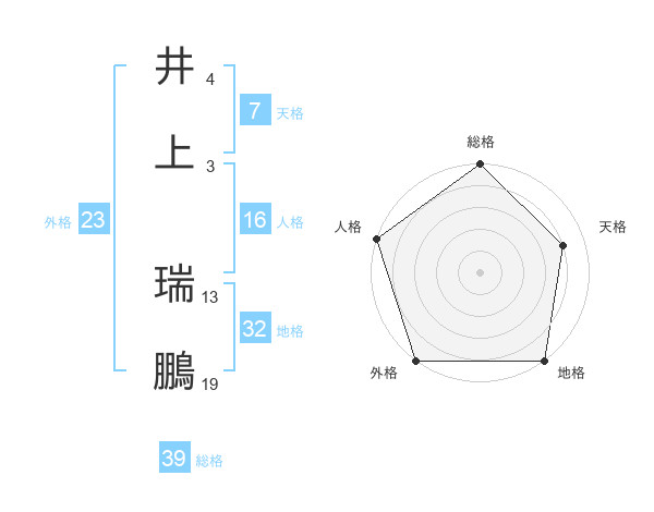 井上 瑞鵬さんを姓名の画数から五運を鑑定