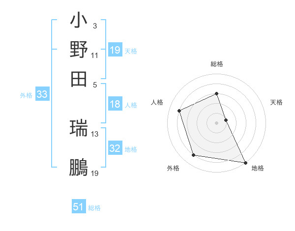 小野田 瑞鵬さんを姓名の画数から五運を鑑定