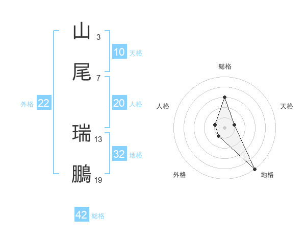 山尾 瑞鵬さんの総格は42画の3点!