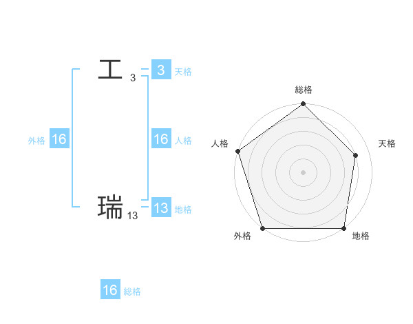 工 瑞さんの外格は16画の5点!
