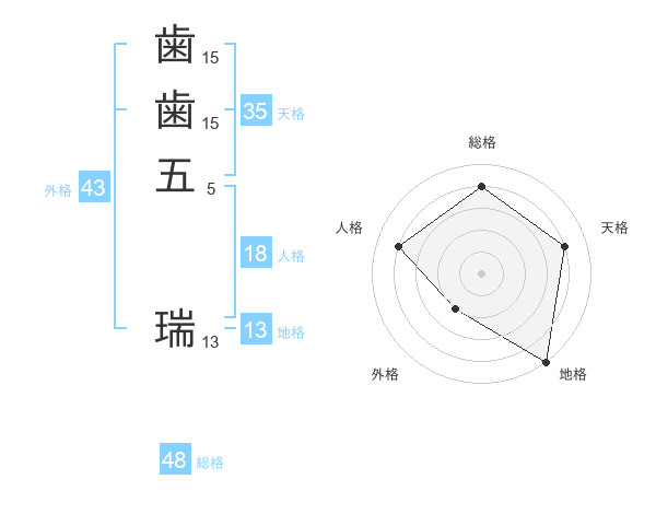 歯歯五 瑞さんを姓名の画数から五運を鑑定