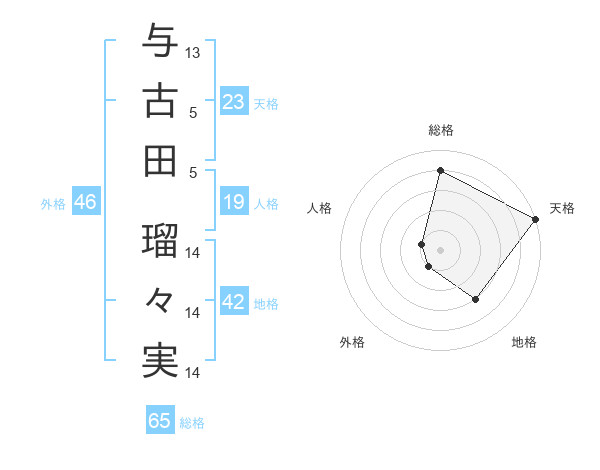 与古田 瑠々実さんを姓名の画数から五運を鑑定