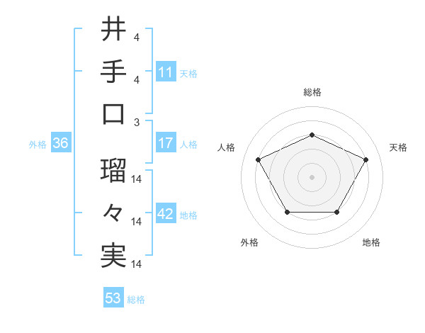 井手口 瑠々実さんの総格は53画の3点!