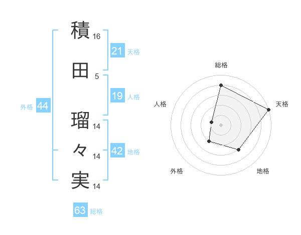 積田 瑠々実さんを姓名の画数から五運を鑑定