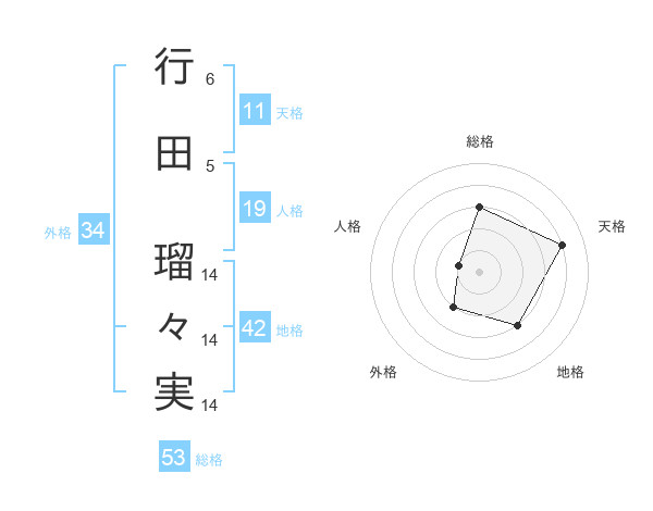 行田 瑠々実さんの総格は53画の3点!